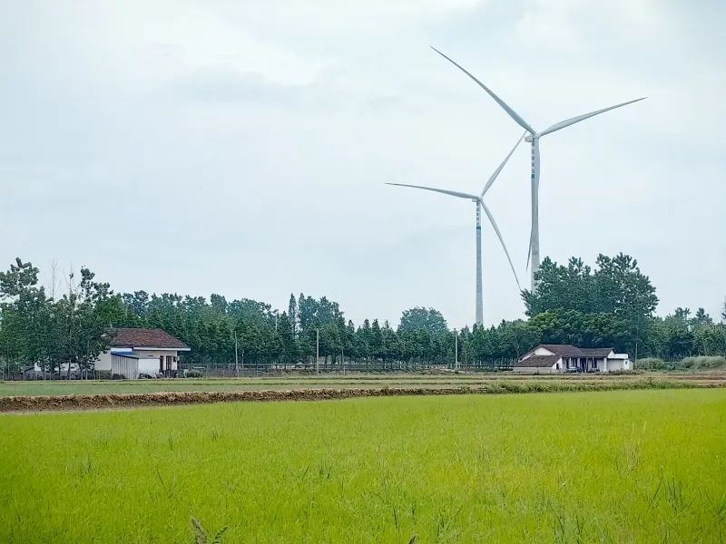 風(fēng)力發(fā)電機(jī)屹立在田野中。受訪單位供圖