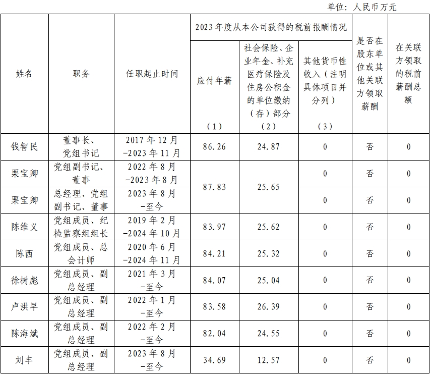國家電力投資集團有限公司企業(yè)負責(zé)人2023年度薪酬情況