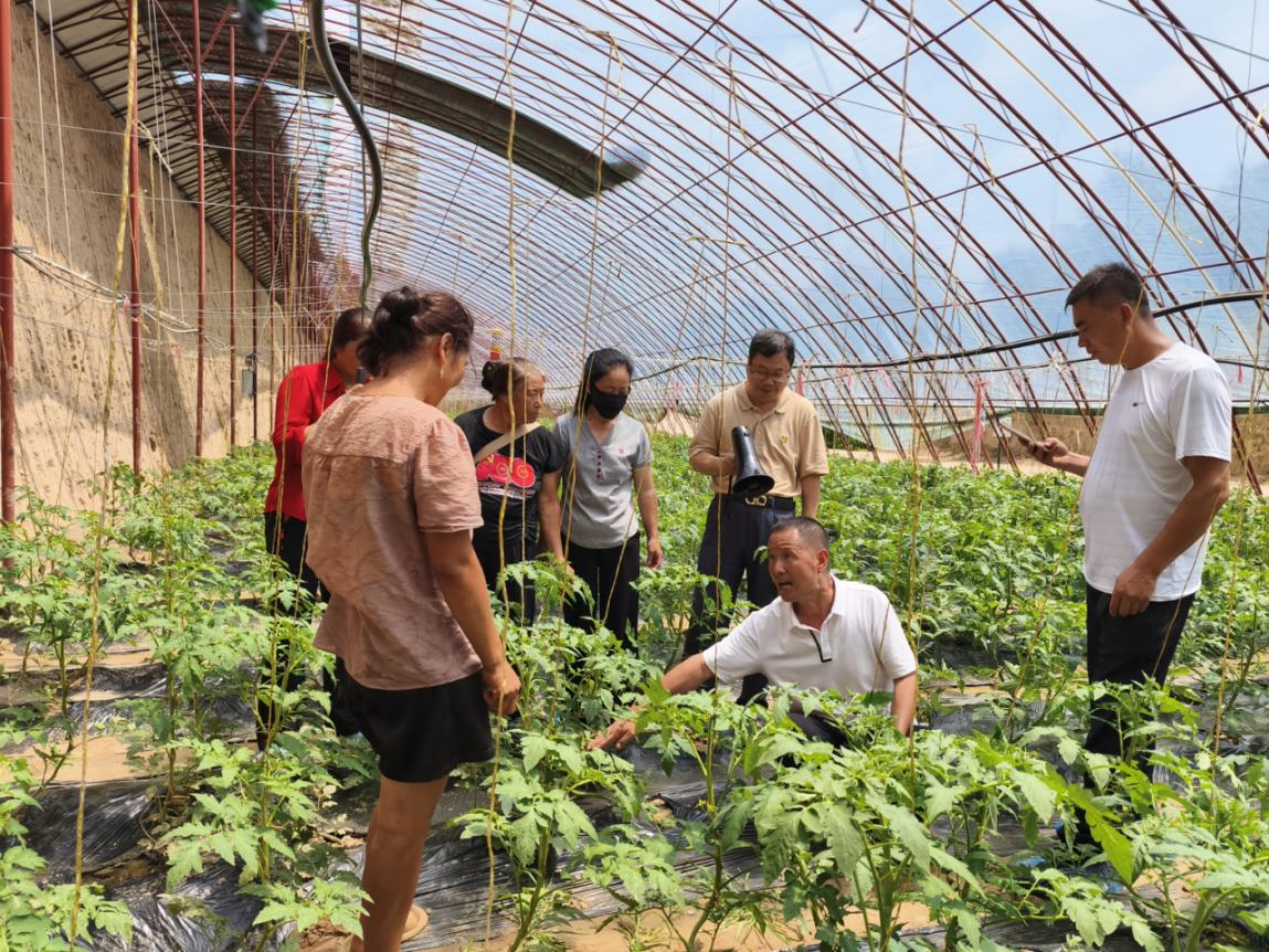 黨校組織中國農(nóng)科院蔬菜所與當(dāng)?shù)貙<以诖笈锸卟朔N植基地開展現(xiàn)場(chǎng)教學(xué),講解當(dāng)?shù)卮笈锸卟顺R姴∠x害及防治方法。