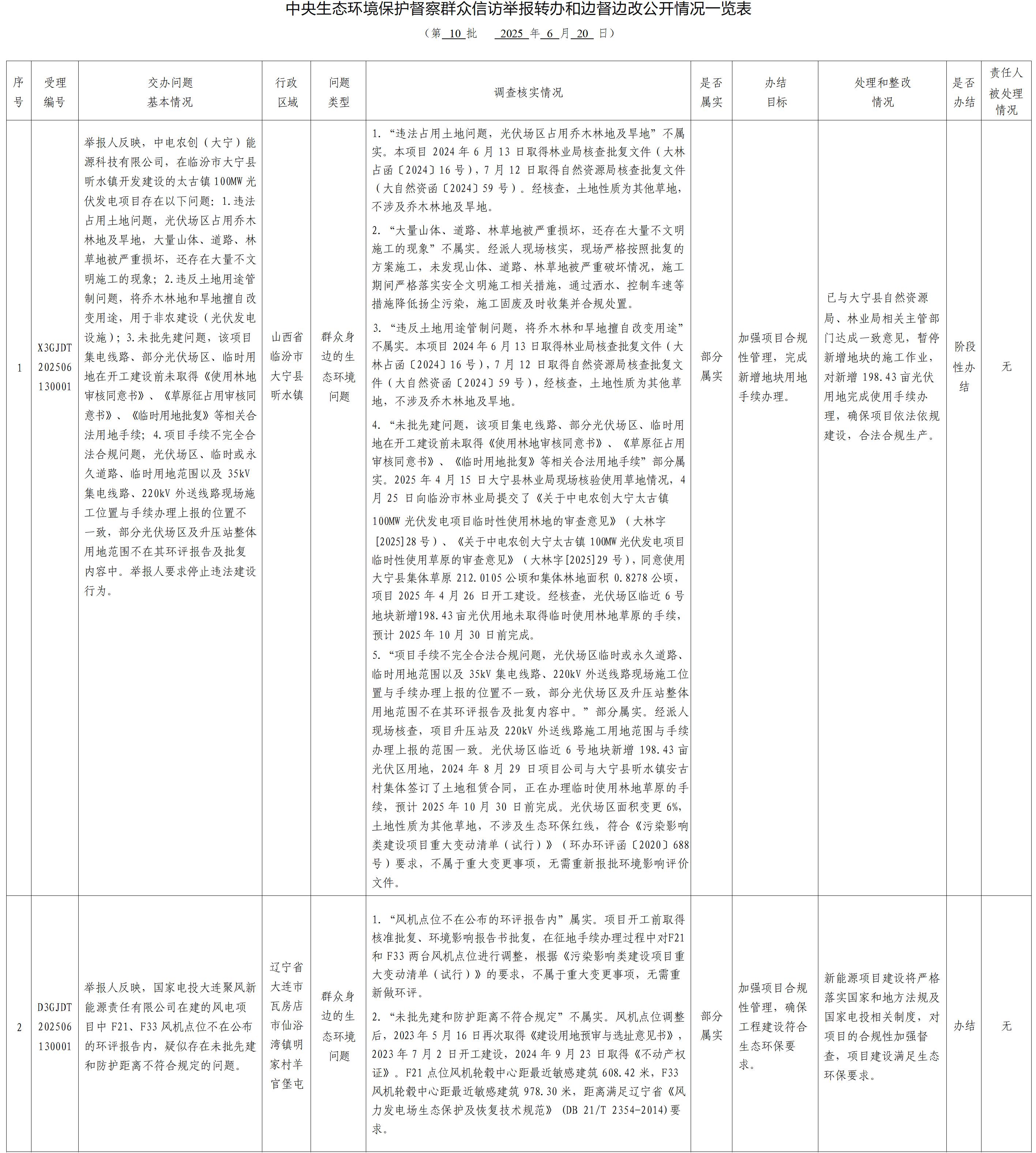 中央生態環境保護督察群眾信訪舉報轉辦和邊督邊改公開情況一覽表(第十批)